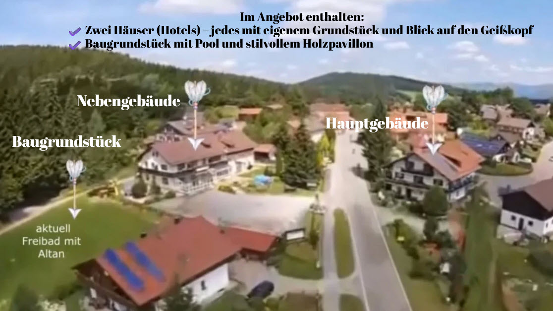 ✔️ Zwei Häuser (Hotels) – jedes mit eigenem Grundstück und Blick auf den Geißkopf